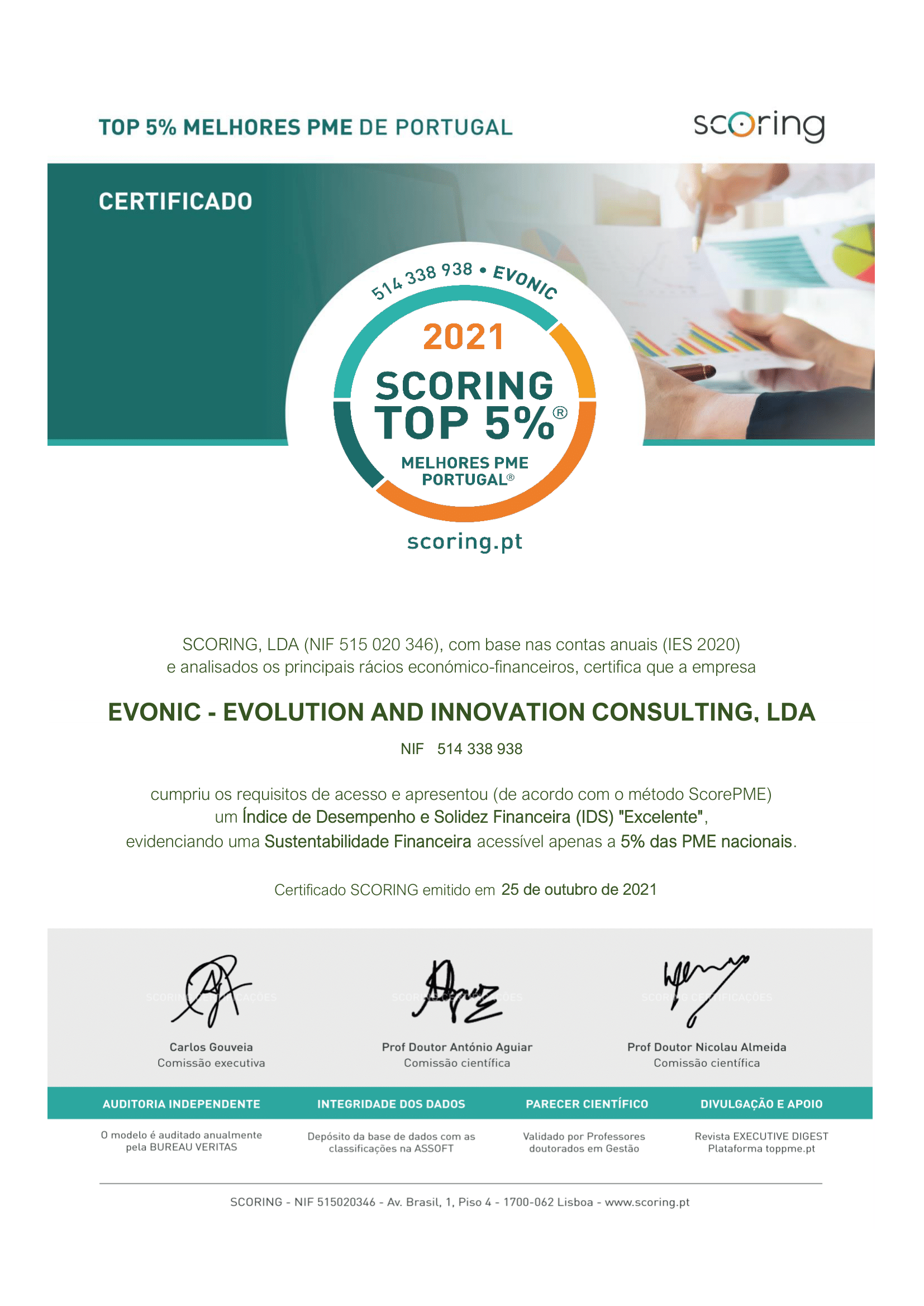 Esta certificação foi atribuída à EVONIC pela excelência da gestão operacional e financeira demonstrada.