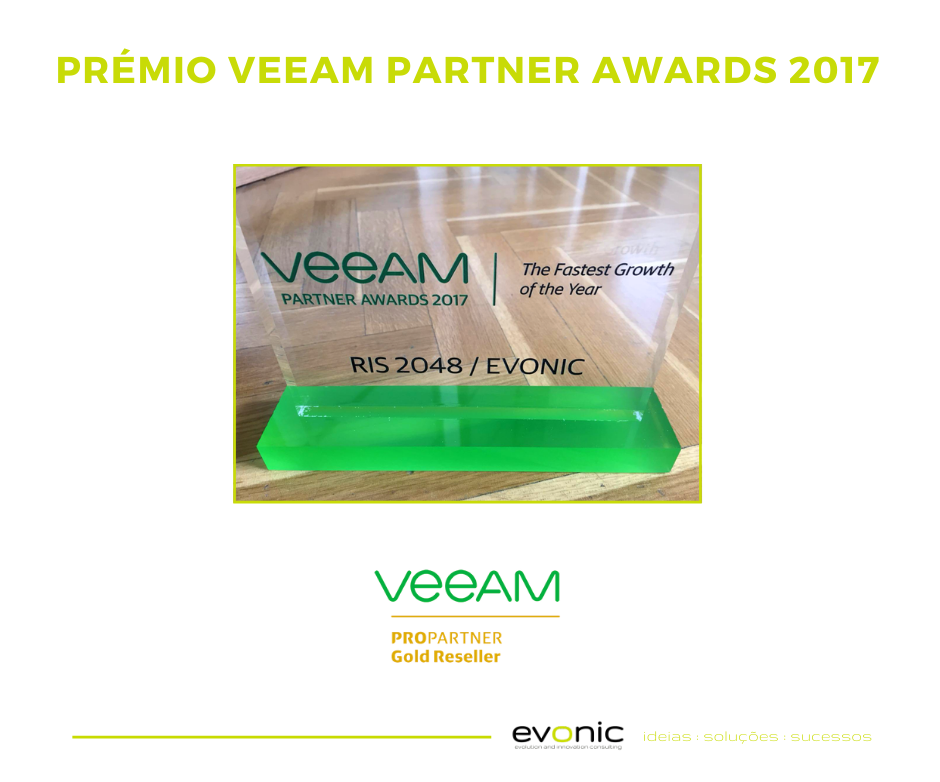 ler maisA RIS2048/EVONIC receberam um destaque especial na GALA Entrega de Prémios da VEEAM em Madrid. Fomos felicitados com Prémio Partner Com Maior Crescimento em Portugal durante ano 2017 no Partner Summit Iberia 2018, em Madrid no passado 22 de março. Obrigada Por acreditarem em Nós.